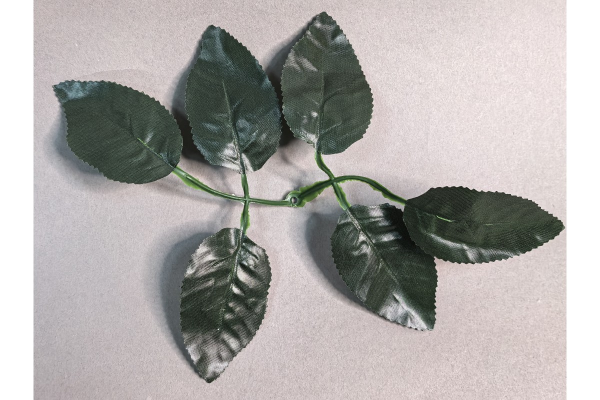 64.131 Лист розы ритуальный 6-ка темный большой на толстый стебель