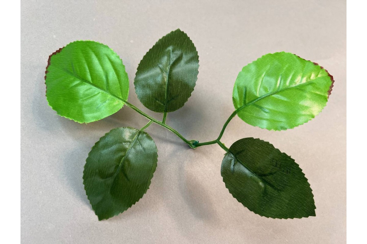 64.113 Лист розы 5-ка двухцветный большой на толстый стебель